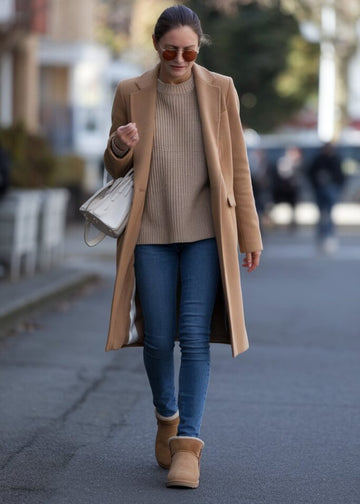 Die neutralen Wildledertöne des Stiefels harmonieren mit den Farbpaletten der jeweiligen Jahreszeit – egal ob Sie im Winter gemütliche, neutrale Farben kombinieren oder im Frühling zu leichteren Outfits wechseln. Die hochwertigen Materialien und das dezente Branding verleihen ihm eine edle Note, die lässige Looks aufwertet und eleganteren Outfits einen Hauch von entspanntem Luxus verleiht.